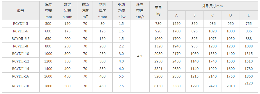 皮帶具有自動糾偏功能,低噪聲、運行可靠、維護簡單。可實現連續不斷的吸棄鐵。 其內部磁路采用計算機模擬設計、完善的雙磁結構,保障整機在惡劣環境中無故障長期運行。擁有防爆型和鎧裝型。