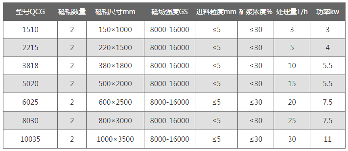 其原理為物料經料倉通過導料盤進入磁場區,磁性礦物被吸附在磁輥表面旋轉到達精礦區,毛刷將吸附在磁輥表面上的磁性礦刷脫,在高壓水的噴射下落到精礦斗里,部分未被吸附的磁性礦粒、非磁性礦粒和磁性較弱的礦粒進入到再選,個實現10輥組合,可對物料進行多達10次的分選,特別是對強磁性、中磁性、弱磁性共存礦物有顯著的分選效果。