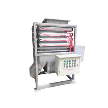 CQZ型全自動(dòng)在線磁分離機(jī)安裝于流水線中以實(shí)現(xiàn)在線實(shí)時(shí)自動(dòng)清除物料中的鐵質(zhì)。自動(dòng)定時(shí)控制器可以設(shè)定為連續(xù)自動(dòng)實(shí)時(shí)清理,也可根據(jù)鐵質(zhì)含量情況來(lái)設(shè)置清理時(shí)間間隔。其強(qiáng)大的磁場(chǎng)可以清除流動(dòng)、干燥的、流動(dòng)性好、粉狀的、細(xì)小顆粒中的鐵磁性物質(zhì)。二、示意圖